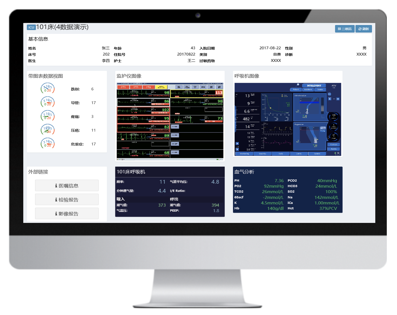 實(shí)時呈現(xiàn)病人體征參數(shù)、變化趨勢,診療設(shè)備參數(shù),同時接入醫(yī)囑、檢驗(yàn)結(jié)果數(shù)據(jù),一體化呈現(xiàn)存儲和回溯,方便醫(yī)護(hù)急救、會診、查房